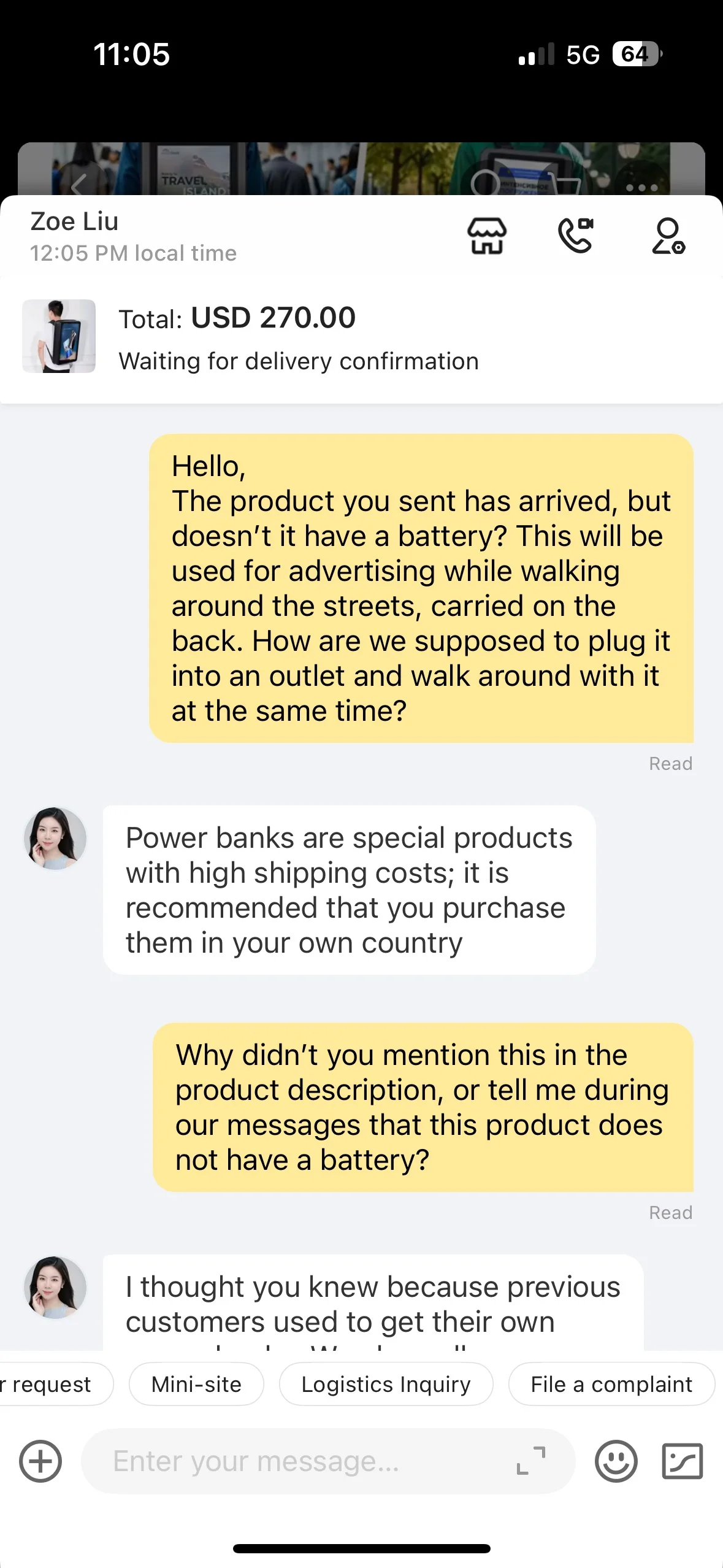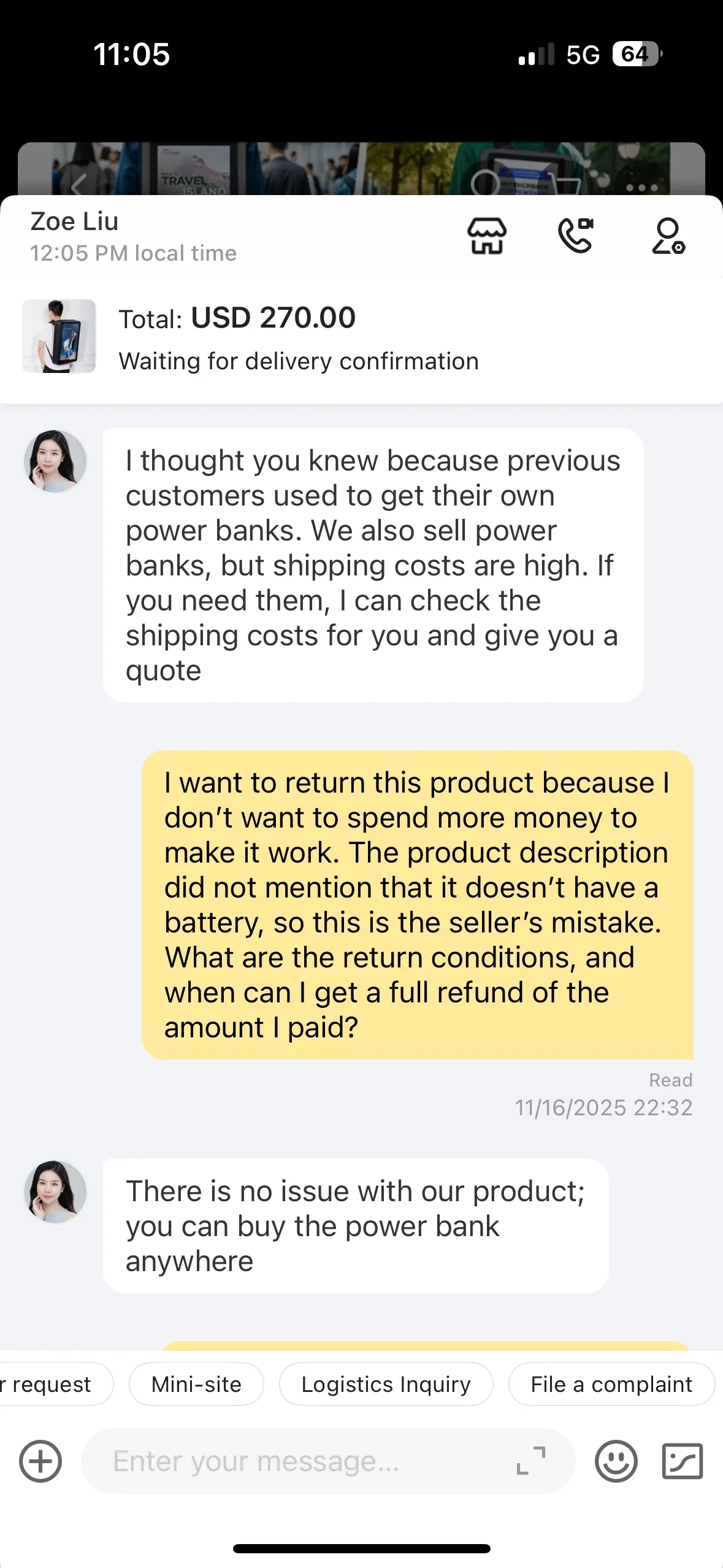 I contacted the seller, and they casually told me to just buy a separate battery myself. I already paid a lot for this product, and now they expect me to spend even more to make it work.