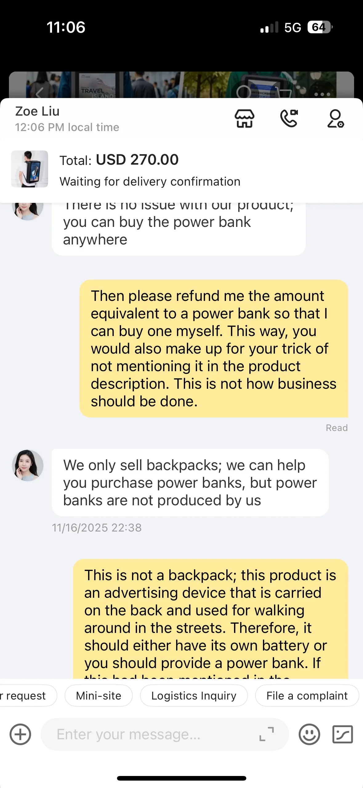 I purchased this “Walk Billboard Backpack” expecting a fully functional wearable advertising device. Surprise – it has no battery, and this was never mentioned in the product description. The idea that I should plug it into a wall outlet while walking around the streets is absurd 🤣.